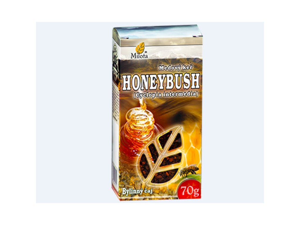 Honeybush čaj se získává z keřovité rostliny rodu Cyclopia, která roste divoce v horských oblastech Jihoafrické republiky. Sklízí se ručně. Květy jsou jasně žluté s výraznou sladkou medovou vůní. Připravený čaj má zvláště při pravidelném užívání, příznivý vliv při některých zdravotních potížích. Čaj by ovšem měli pít hlavně zdraví lidé, protože si tak doplní rozmanité prospěšné látky.Čaj neobsahuje žádný kofein a má velmi málo taninu. Je proto zvláště cenný pro děti a pacienty s vysokým krevním tlakem, se zažívacími potížemi včetně žaludečních vředů a ledvinovým pískem. Přítomný pinitol údajně usnadňuje odkašlávání a ovlivňuje hospodaření s cukrem. Další přítomné látky - isoflavonidy, xantiny, glykosidy, magniferin mají dle testování močopudné, křeče uvolňující, antioxidační, protizánětlivé a hypolipidemické účinky. Příprava: 2 čaj. lžičky přelít 0,3l horké, vroucí vody. Vyluhovat 3-5 min.