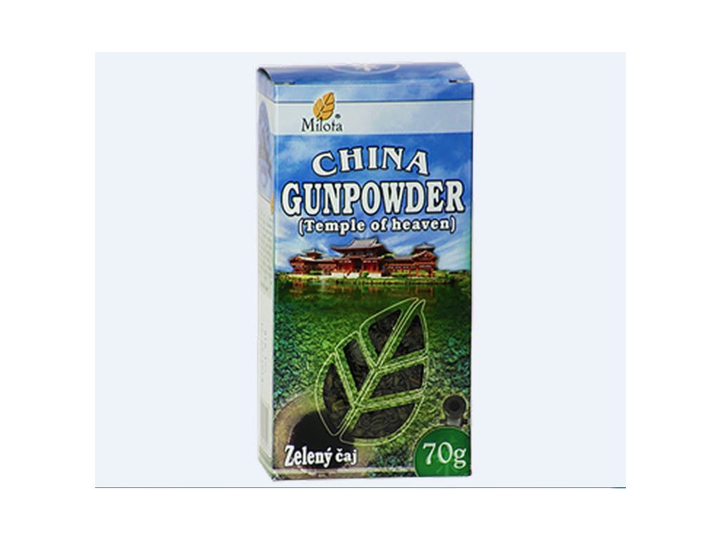 Složení: ču-čcha (camellia sinensis, perlový čaj, střelný prach z nebeského chrámu). Nejkvalitnější čínský zelený čaj typu Gunpowder pochází z provincie Če ťiang. Tento čaj je smotaný do tvaru malých kuliček, proto název “střelný prach” neboli perlový čaj. Svým výjimečným zpracováním (sušením na dřevěném uhlí) a důkladným srolováním dostává tento čaj nezaměnitelnou chuť, aroma a maximální kvalitu, která ho odlišuje od jiných čajů. Po přelití horkou vodou se lístky pozvolna rozvíjejí. Pro značný obsah fluoridů se doporučuje jako prevence dentálního zdraví. Listy tohoto obzvláště ušlechtilého zeleného čaje, vás svojí lahodnou chutí dostanou, jak název napovídá, do nebeského chrámu.