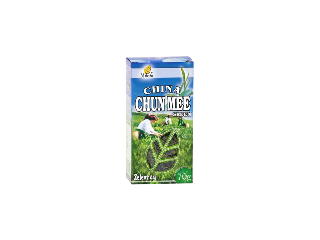Složení: Zelený čaj Chun mee (Camellia sinensis). V Číně jeden z nejkonzumovanějších zelených čajů, v Čechách známý jako "Vzácné Obočí". Drobné lístky jsou svinuty do tvaru vrabčích jazýčků nebo obloučků připomínajících obočí. Je to celolistový čaj ze stejnojmenné čínské provincie se značně povzbuzujícími účinky a plnou chutí, která přechází v nasládlou příchuť švestek. Nálev bývá žlutozelený, podobných (ale jemnějších a vyváženějších) chutí jako nálev čaje Gunpowder, často kovového aroma. Čaj obsahuje Polyfenoly. Možno několikeré zalití. Čaj se hodí k popíjení kdykoli během dne. Je také skvělou volbou pro přípravu ice tea.